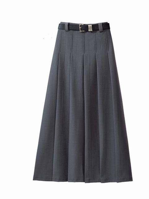 スカート ロング丈 プリーツスカート レディース Aライン フレアスカート ラシャスカート 無地 ボトムス おしゃれ グレー