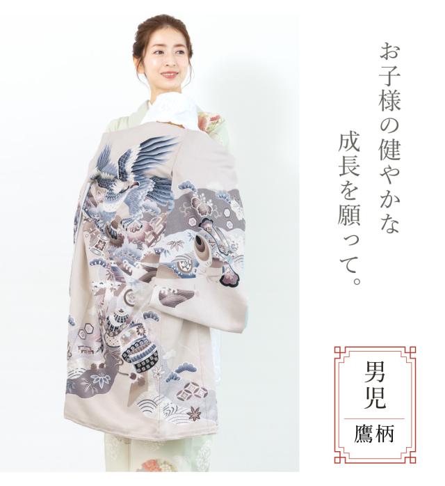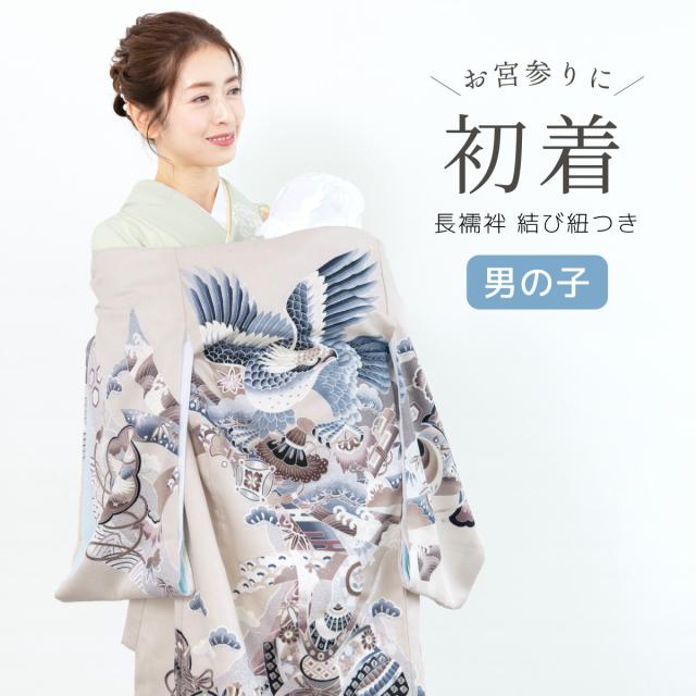 初着 産着 男の子 販売 長襦袢付き ベージュ 鷹 荒波 掛け着 祝着 お宮参り お祝い ベビー 赤ちゃん 男児 ポリエステル 仕立て上がり 送料無料