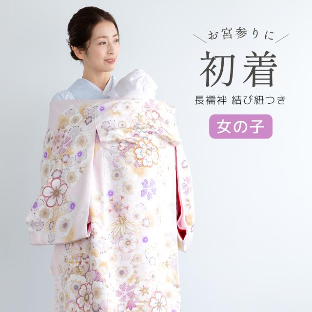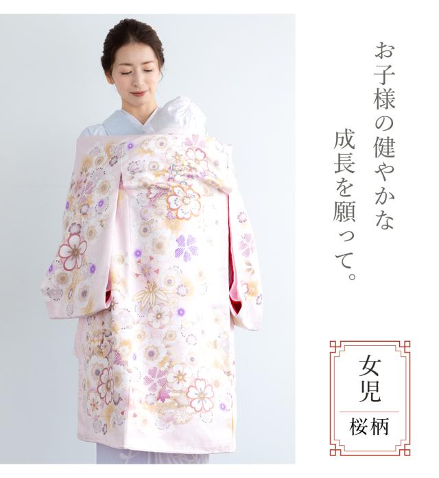 初着 産着 女の子 販売 ピンク 刺繍 桜 手鞠 雪輪 長襦袢付き 掛け着 うぶぎ 祝着 お宮参り お祝い ベビー 赤ちゃん 仕立て上がり 送料無料