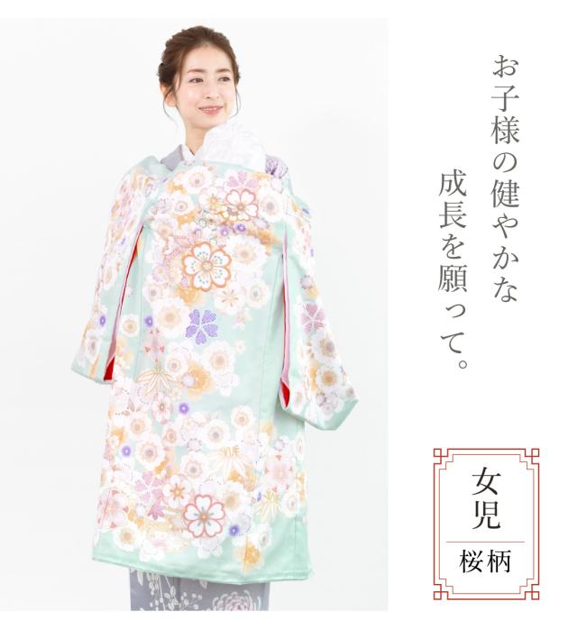 初着 産着 女の子 販売 ブルー 刺繍 桜 手鞠 雪輪 長襦袢付き 掛け着 うぶぎ 祝着 お宮参り お祝い ベビー 赤ちゃん 仕立て上がり 送料無料