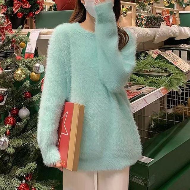 シャギーニット ニット レディース 秋冬 冬 ふんわり ふわふわ ニットトップス プルオーバー セーター 大きいサイズ グリーン