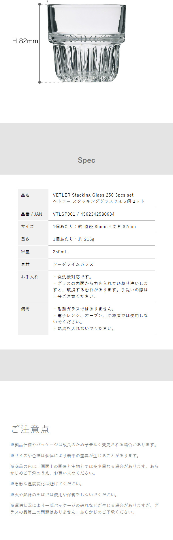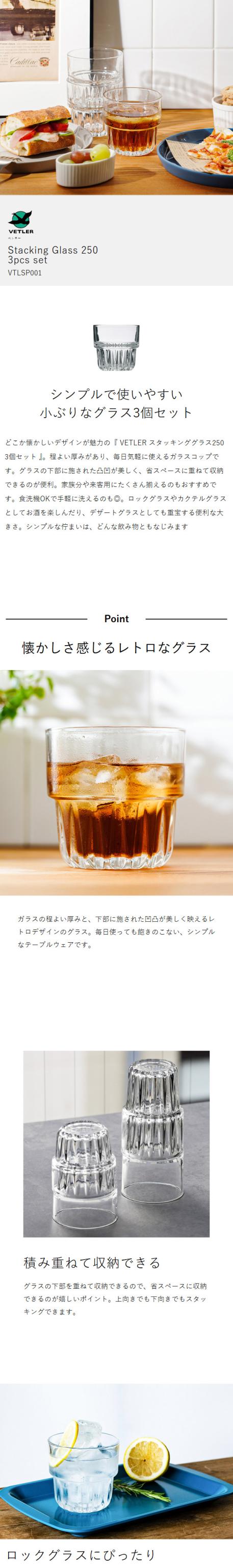 [ VETLER スタッキンググラス250 3個セット ]