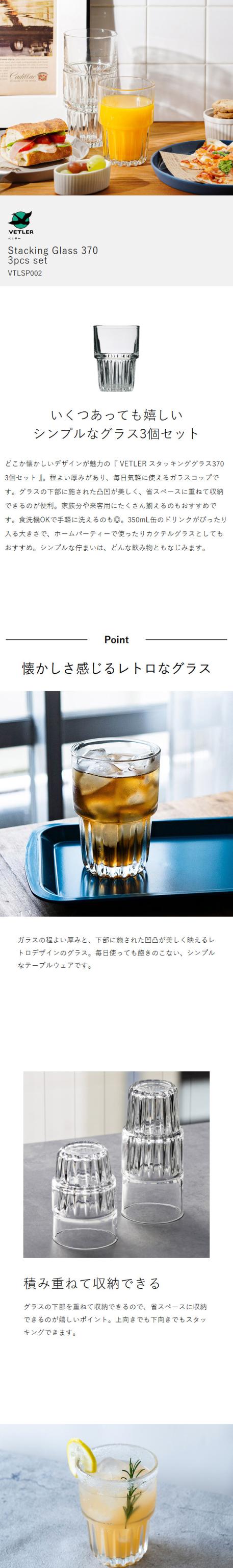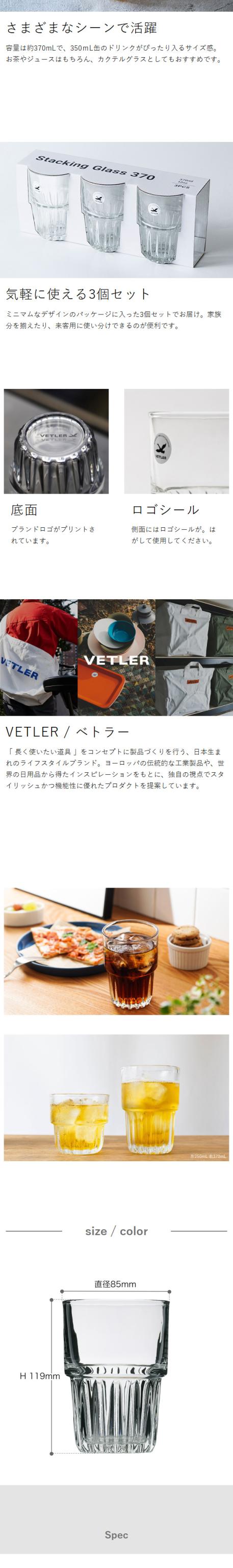 [ VETLER スタッキンググラス370 3個セット ]