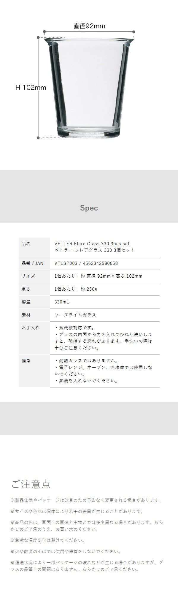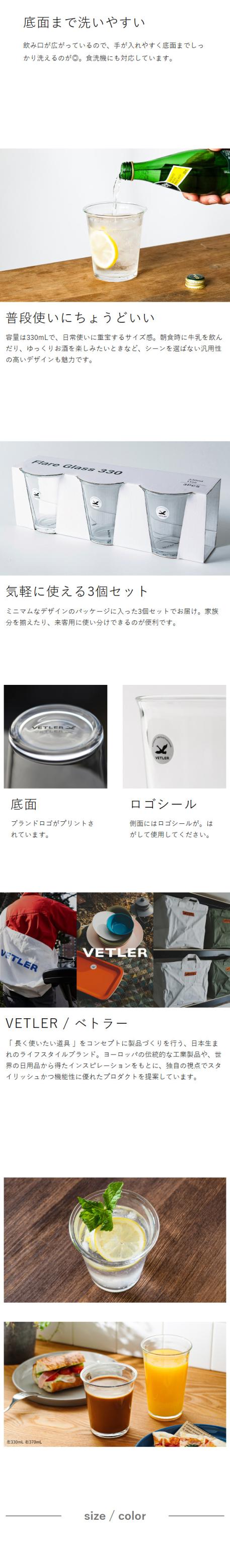 [ VETLER フレアグラス330 3個セット ]グラス ガラス タンブラー コップ グラスセット おしゃれ ガラスタンブラー ウォーターグラス コーヒー ビールグラス スタッキング 食洗機対応 レトロ カフェ 食器 シンプル ベトラー VTLSP003