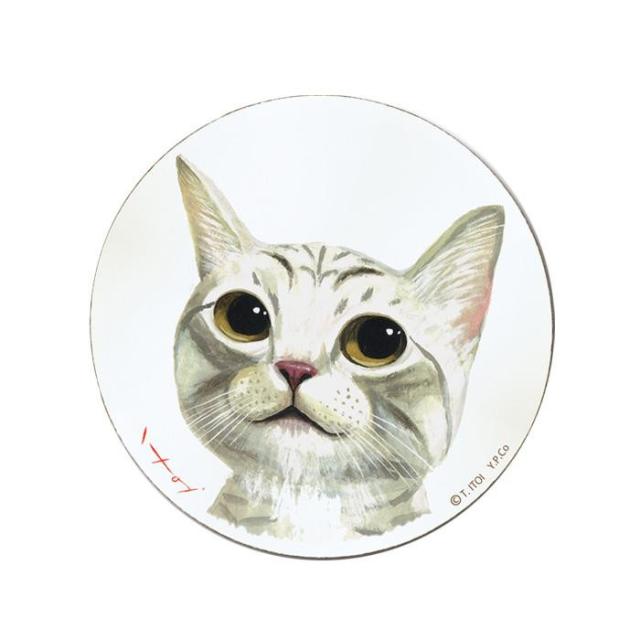 | 奈良町の男性作家「糸井 忠晴」が描くねこ達が迫力のまんまるアートになりました。目の部分は特殊なクリア加工でキラリと光ります。 |