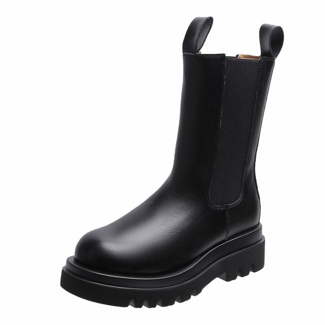 レディース 秋新作 ブーツ サイドゴア ロングブーツ ショートブーツ ミドル 長靴 厚底 シューズ 秋 :ブラック(ロング)