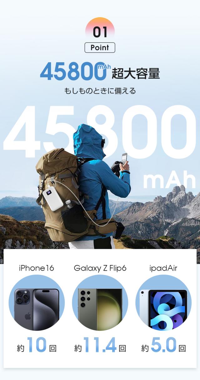| 45800mAh 大容量 モバイルバッテリー | ||||||