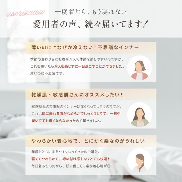 ショーツに重ねて履く事で、しっかり保湿&保温