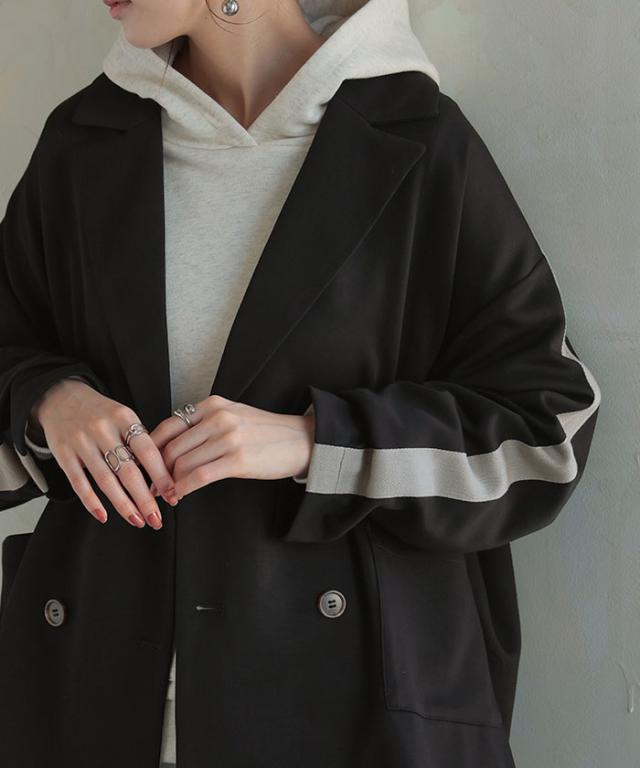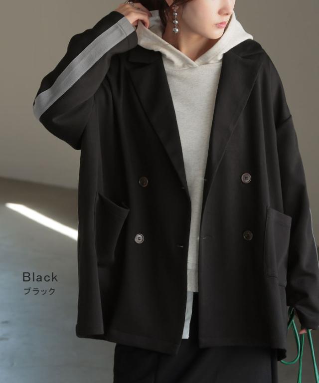 クラシカルなダブルボタンでありながら袖ラインでスポーティーな印象のジャケットです。