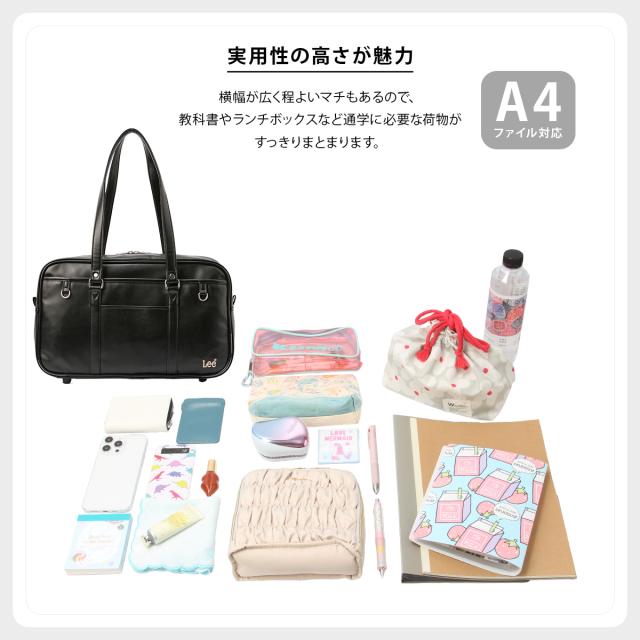 商品レビューで+5%|リー スクールバッグ スクバ 合皮 女子 女子高生 高校生 中学生 通学 学生鞄 黒 茶色 ブラック ブラウン サブバッグ カバン A4 Lee 320-4882