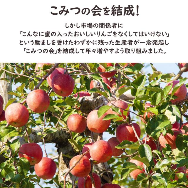 しかし、市場関係者に「こんなに蜜の入ったおいしいりんごを無くしてはいけない」という励ましを受けたわずかに残った生産者が一念発起。「こみつの会」を結成して、年々増やすよう取り組みました。