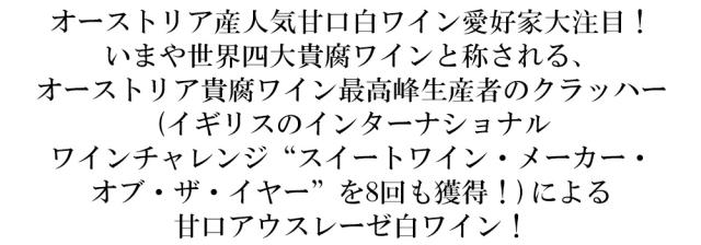 オーストリア産人気甘口白ワイン愛好家大注目!いまや世界四大貴腐ワインと称される、オーストリア貴腐ワイン最高峰生産者のクラッハー(イギリスのインターナショナルワインチャレンジ“スイートワイン・メーカー・オブ・ザ・イヤー”を8回も獲得!)による甘口アウスレーゼ白ワイン!