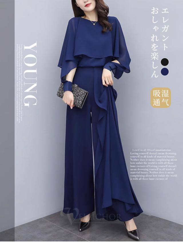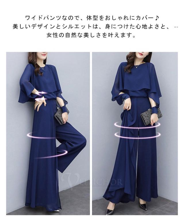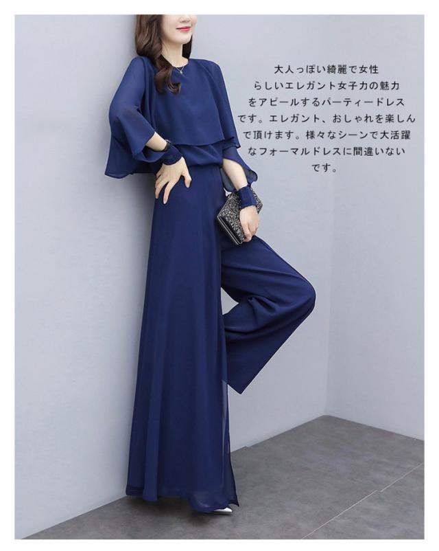 パンツドレス 結婚式 セットアップ 袖あり ワイドパンツ 卒業式 入学式 パンツスーツ レディース オールインワン パンツ フォーマル パーティー 披露宴 二次会