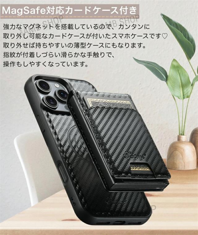 ● ピタッと装着可能なMagSafe対応カードケース付き、マグネット搭載の大人おしゃれなスマホケース。