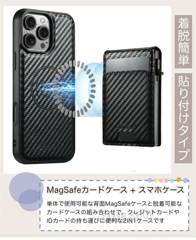 ● 単体で使用可能な背面MagSafeケースと脱着可能なカードケースの組み合わせで、便利さが更にアップ!