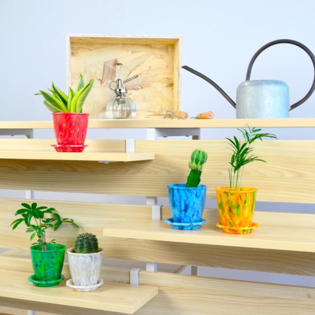 いくつか揃えて並べても、柄は一点物のマーブル柄なのでおしゃれです。