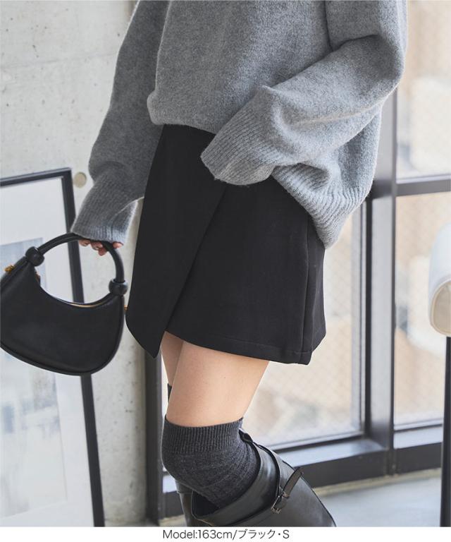 もっちりとした触り心地のダイバー素材を使用した、ラップスタイルのミニスコート。伸縮性のある素材が体にフィットし、動きやすさと快適さを提供します。裏地はパンツ仕様になっており、安心して着用できるデザイン。ベルトレスでシンプルながらも洗練された印象を与えます。【素材・サイズ感】ダーツ入りで、体のラインを拾いすぎない台形シルエットが特徴。自然な広がりがあり、女性らしい美しいラインを演出します。脇にコンシールファスナーが施されており、見た目もスッキリとした印象に。デイリー使いからお出かけまで、幅広いシーンで活躍する一着です。※キャンセル/変更不可※※お届けまでの日程について