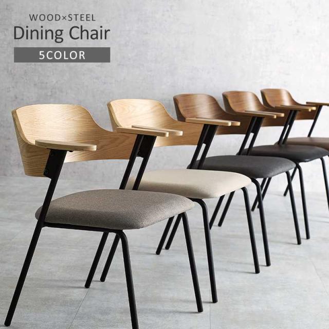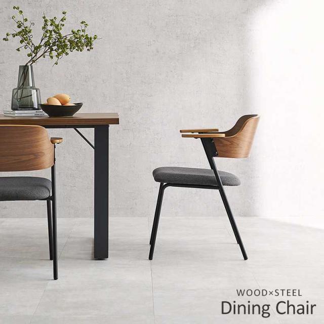 アッシュ材の木目が映える背もたれと細身のスチール、異素材の組み合わせを楽しめるデザインチェア。