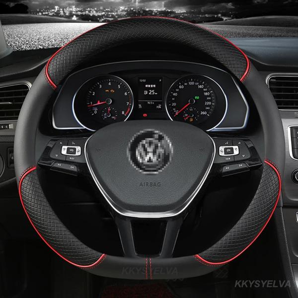 レザーステアリングホイールカバー,38cm,パサート,キャディ,トゥーラン,ティグアン,ゴルフ,ポロ,teramont,t-roc,クロス用