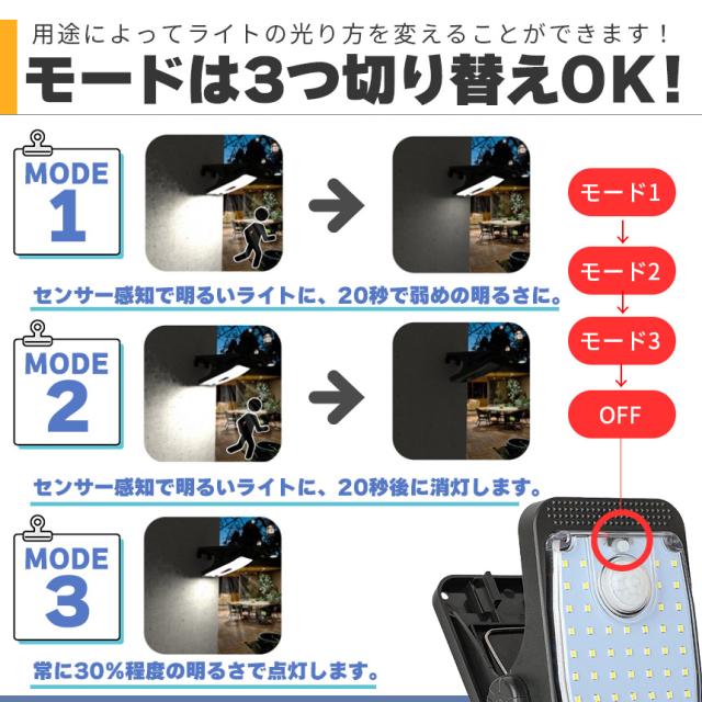クリップソーラーライト センサーライト ガーデンライト USB充電 ソーラー充電 昼白色 電球色 防犯灯 3000mAh蓄電池 アウトドア キャンプ ソーラー ソーラーライト 暗闇センサー 動体センサー人感 照明 IP44防水 防犯 人 庭 ガーデン 階段 室内 室外