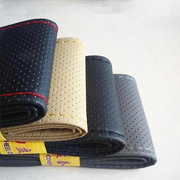 マイクロファイバーレザーステアリングホイールカバー,汗吸収,通気性,車のアクセサリー,36〜38cm