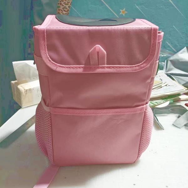 ピンクの車のゴミ箱、25cm、防水、ヒョウ柄、ポータブル、クローザブルオーガナイザー、ゴミ箱、車両用品、室内収納