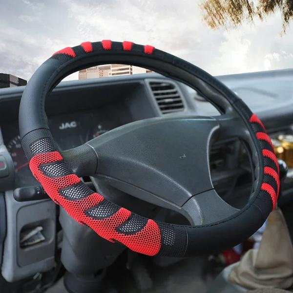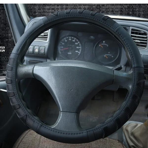 レザーステアリングホイールカバー,車内アクセサリー,大型,40cm, 42cm, 45cm, 47cm, 50cm