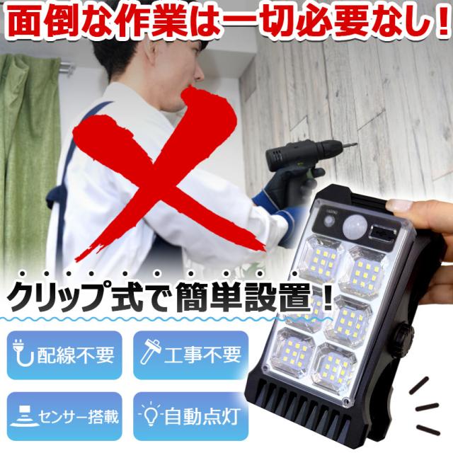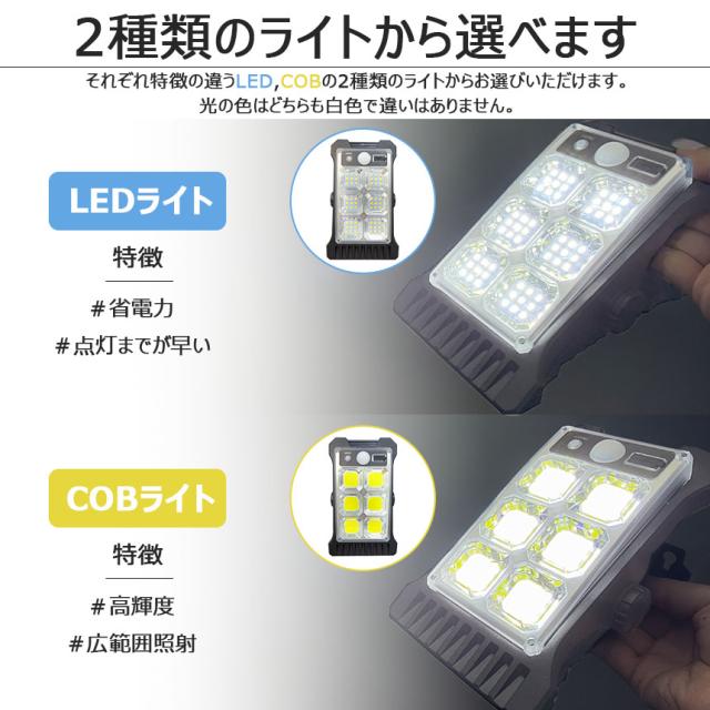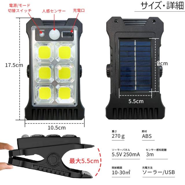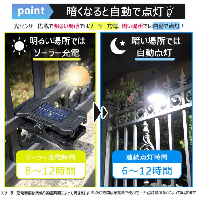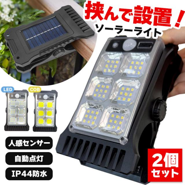 クリップライト LEDライト COBライト 2個セット クリップ ライト ソーラーライト センサーライト 防犯 照明 自動点灯 人感センサー ソーラー充電 USB充電 明るい ガーデンライト 庭 セキュリティライト 防犯ライト 防犯グッズ 防水 屋外 壁付け 屋外照明 昼白色 白 LED COB