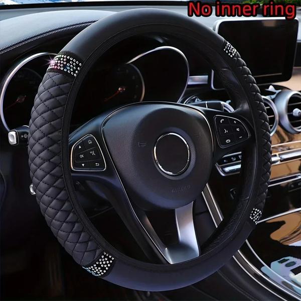 合成皮革カーステアリングホイールカバー,人工ダイヤモンド,14.57-14.96インチ,新品
