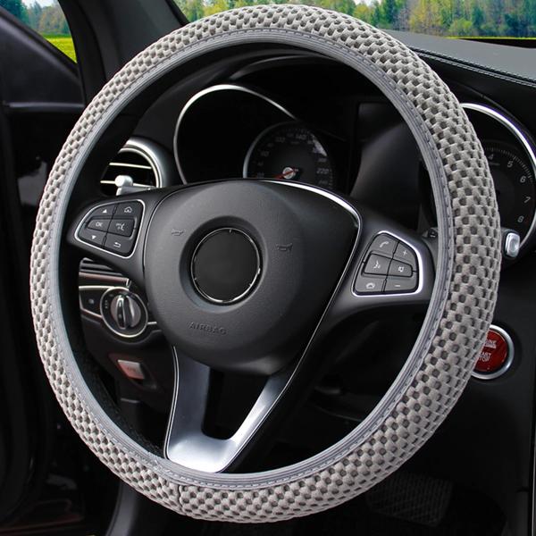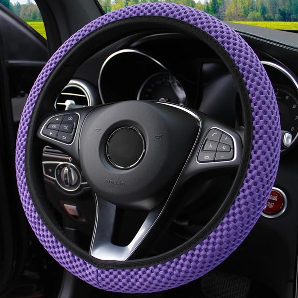 女性のための快適なメッシュカバー,四季,通気性のあるアクセサリー,快適な車のステアリングホイールカバー,黒