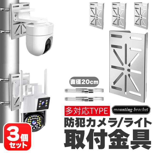 防犯カメラ ポール 取付金具 3個セット ブラケット スタンド ハウジング 穴開け不要 互換性 監視カメラ ダミー ハウジング ブラケット円柱 角柱 屋外 設置 すぐ使える 頑丈 丈夫 錆に強い ステンレス鋼