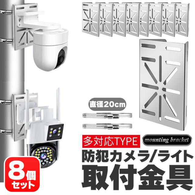 防犯カメラ ポール 取付金具 8個セット ブラケット スタンド ハウジング 穴開け不要 互換性 監視カメラ ダミー ハウジング ブラケット円柱 角柱 屋外 設置 すぐ使える 頑丈 丈夫 錆に強い ステンレス鋼