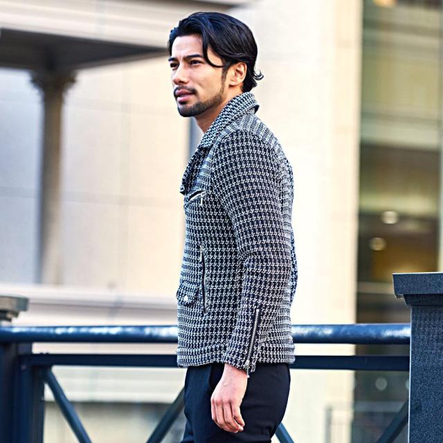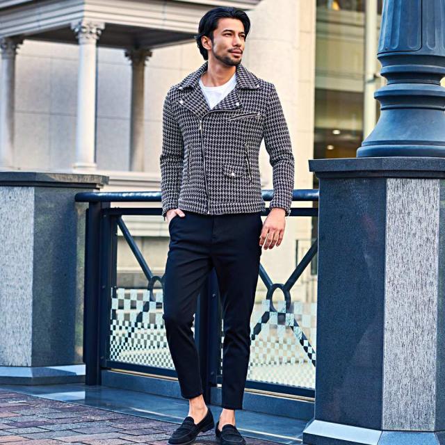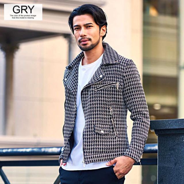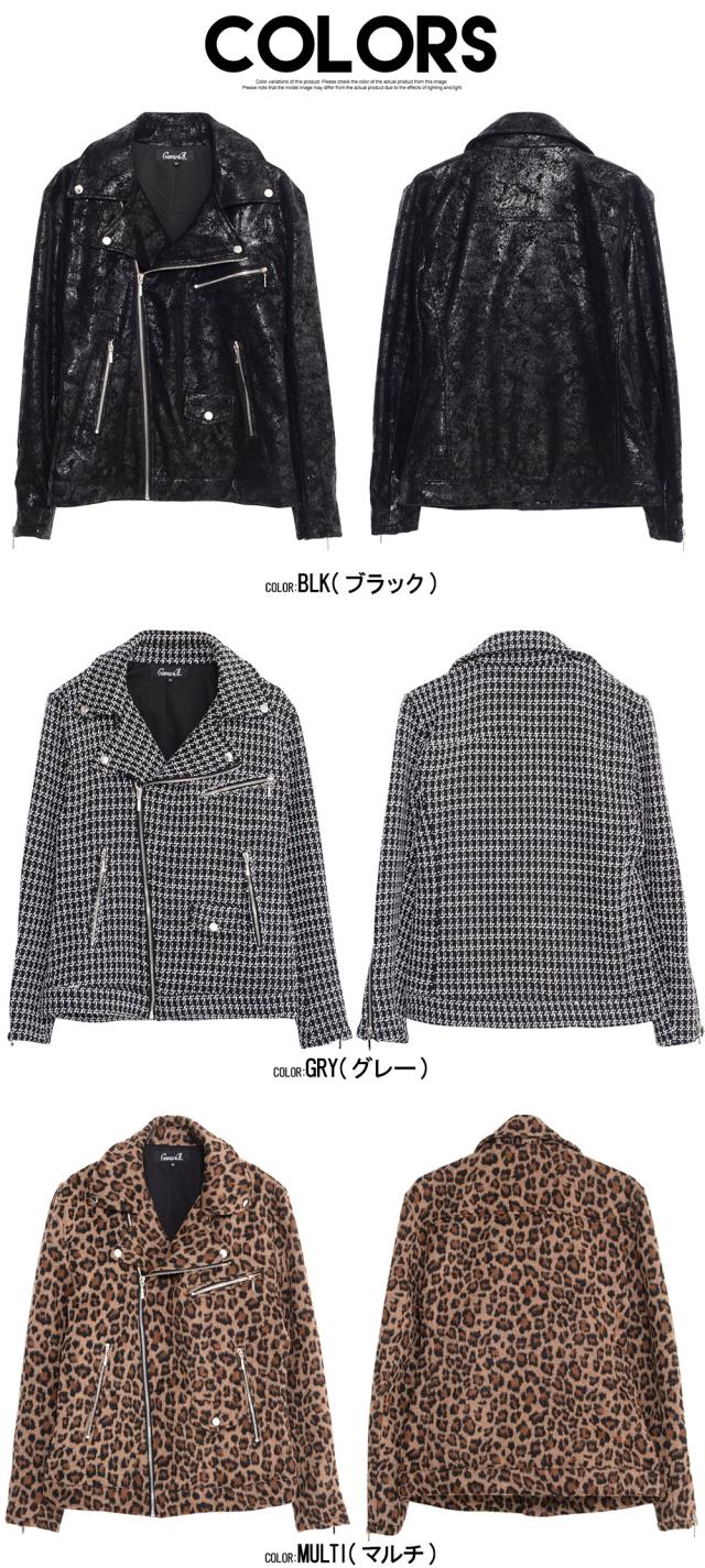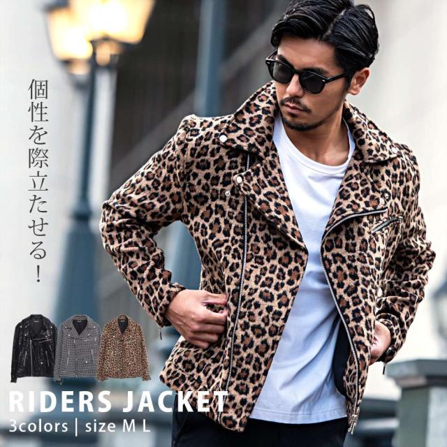 ライダースジャケット メンズ ダブルライダース ダブル ライダース ジャケット アウター レザージャケット 革ジャン パイソン ツイード レオパード ヒョウ柄 豹柄 大人 CavariA 20代 30代 40代 ユニセックス 男性 男 服 秋 冬 秋冬 秋服 冬服 ファッション [CANG24-62]