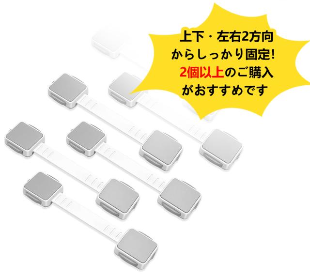 【防災グッズ・震度6強対応】冷蔵庫 転倒防止ベルト 4個セット 360度回転 多機能 引き出しロック 両側でロック解除 ロック 家具固定 棚 食器棚 扉 長さ調整可 二重ロック 強力粘着 安全ロック 落下防止 簡単設置 ワンタッチ開閉