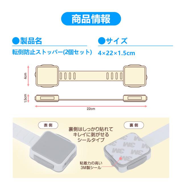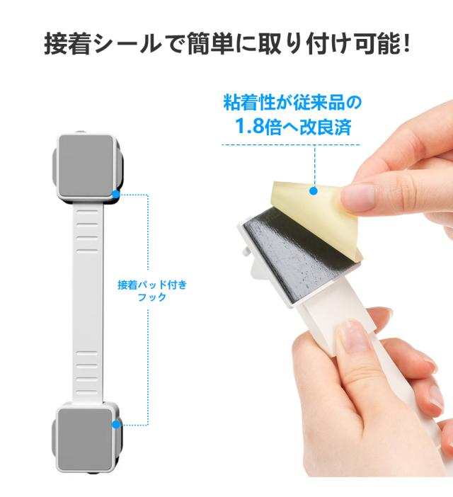 【長さ調整可】こちらの製品の取り付けには、工具など一切不要です。ストラップは、あらゆるサイズのアプライアンスや家具に合わせて長さを調整することができます。接着力に優れていますが、きれいにはがせます、大切な家具を傷めません。