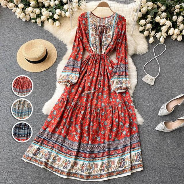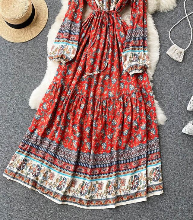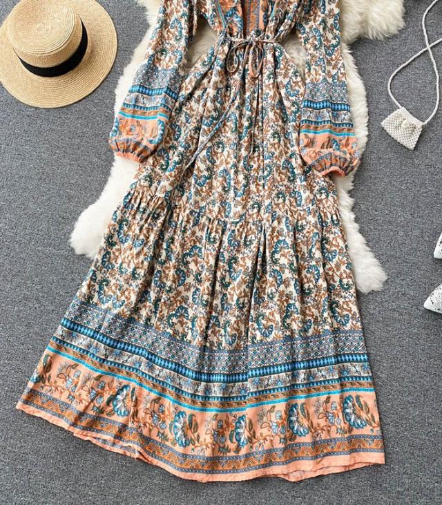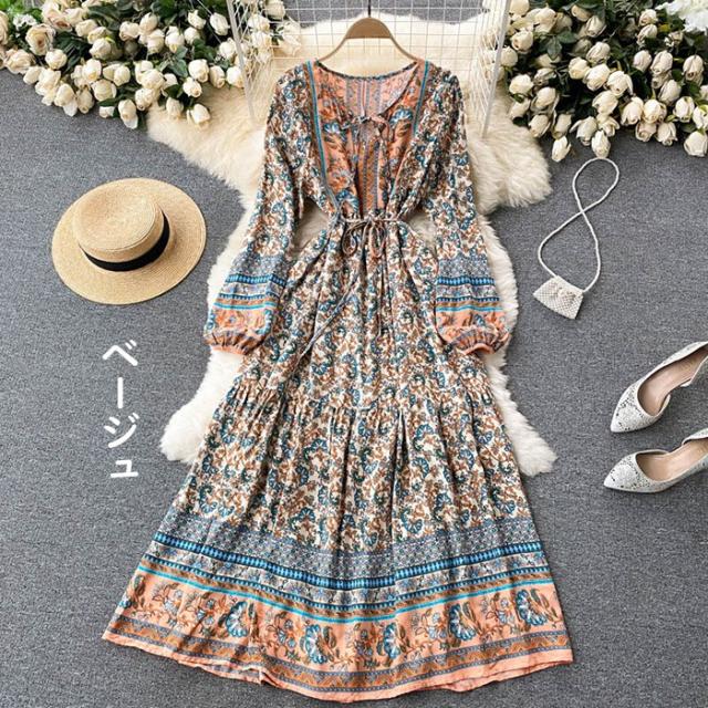 リゾートワンピース レディース フォールドレス ロング マキシ丈ワンピース 旅行用 大人 お洒落 花柄 シャーリング ふんわり フェミニン 薄手 裏地付きリゾートファッション dd002m6m6m6