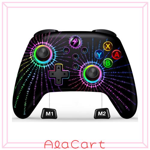 Switch コントローラー マクロプログラム編集 8色RGBライト スイッチ コントローラー 3階段連射機能 無線 プロコン ジャイロセンサー 4つ
