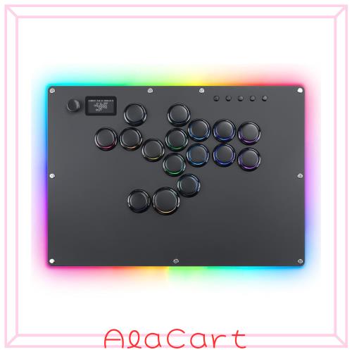 【業界初の多機能メニューボタン搭載】業界初のオールインワンボタンを備えたレバーレスコントローラー、全ての機能をワンメニューボタンで設定可能、入力モード、Dpadモード、Socdモード、ターボスピード、プロフィール、RGB LEDなど。初心者からプロまで、誰でも使いやすいデザインになっています。このレバーレスコントローラーは、競技シーンでの使用に最適化された格闘ゲーム用入力デバイスです。 【最大の利点】すべての機能をワンメニューボタンで設定可能、一般的なアーケード筐体よりも押し心地が抜群。ボタンリムの追加とマットな仕上げで、運指が本当に絶秒。ボタン音は「スコスコ」で静か。さらに、格ゲー熱を盛り上げるRGB雰囲気ライトがバックパネルに付いていて、カラフルなゲームの雰囲気を演出します。 【高精度?高反応】方向入力が直接ボタンに割り当てることで、レバー操作よりも正確かつ高速な入力が可能です。コマンド入力や間隔管理がより速く、より正確に行えるため、間合いの取り方で勝敗を決める格ゲーに最適。また複数ハードに対応しておりWindows/PC/Switch/Steam Deck/PS3/PS4/ArcadeおよびAndroidデバイスで使用出来ます。PS5やXBOX本体に接続する際に、対応コンバーターが要ります。互換性を確保するには、PS5に対応するコンバーターやXBOXに対応するコンバーターをぜひ別途ご購入頂けます。 【優れた機能性】デザイン面もシンプルで高級感があり、コンパクトで持ち運びにも困らずカスタム性も高いので長く使えます。方向キーを同時押しした際の細かい設定やボタンのマッピング機能や連射機能もあり機能面でも優れています。薄型かつ天面が広いので操作性や使い勝手も抜群に良い。左上には液晶ディスプレイ付きで、ボタン入力を直感的に確認可。またキースイッチのホットスワップに対応しており簡単に別のキースイッチに交換出来ます。アクリル板で基盤を挟んだシンプルな構造ですが、非常にきれいなつくり、裏面がマットなクリア素材で基盤が透けて見えます。 【低遅延&静音】アーケードコントローラーの悩み「音」を解消した。レバーレスの方が音は抑えられているけど、格闘ゲームはボタンを連打するから、周りの人がうるさいと感じることもある。その音で自分の戦略が漏れる可能性もある。でも、「音」に関しては、キーボードメーカーの技術が活かされている。これまでの開発経験から、内部構造に最適な静音設計が施されているので、心地よい打鍵音を楽しんでほしい。基盤が低遅延のRaspberry Pi Pico GP2040-CEを搭載、全てのモードでの入力遅延が1ms以内で、超高速ポーリングレートを実現します。
