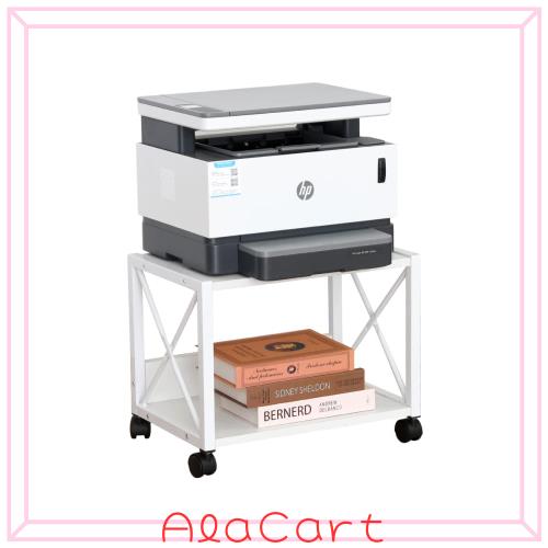 【使いやすい機能性】スムーズなキャスター付き、移動もラクラクです。2段ラックの下棚が背板付き、プリンター台以外のファイルと小物などをスッキリ収納できます。
