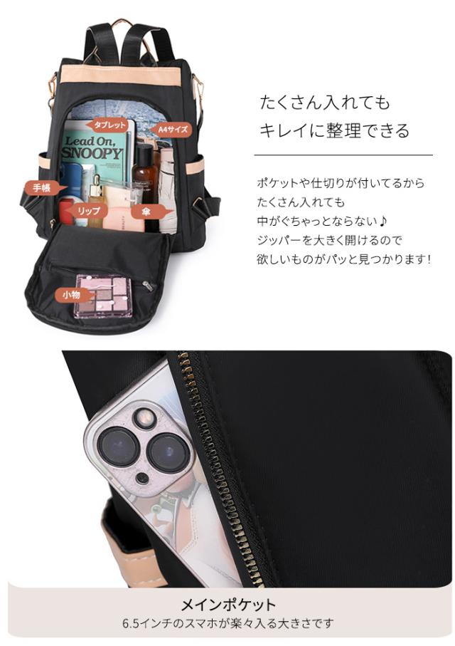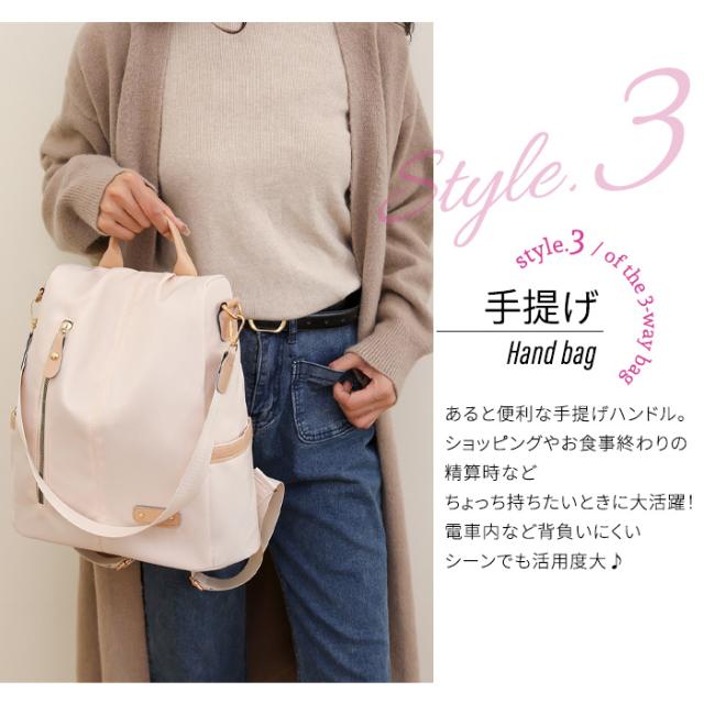 撥水加工 3way リュック ショルダー 手提げ バッグ \新作/ 鞄 かばん バックパック レディース A4 2way マルチway 肩掛けバッグ マザーズバッグ ママバッグ トート シンプル カジュアル 多機能 ナイロン たっぷり収納 肩がけ 軽い 軽量 柔らかい 通勤 通学 dn