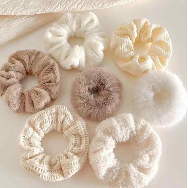 HAPVITAL (7個セット) 髪飾り ヘアゴム シュシュ ヘアーバンド 大人っぽい のどのウサギの毛皮のシュシュ、女性または女の子のための弾性の髪のネクタイふわふわポニーテールホルダー 静電気防止 髪に優しい ギフト (白)