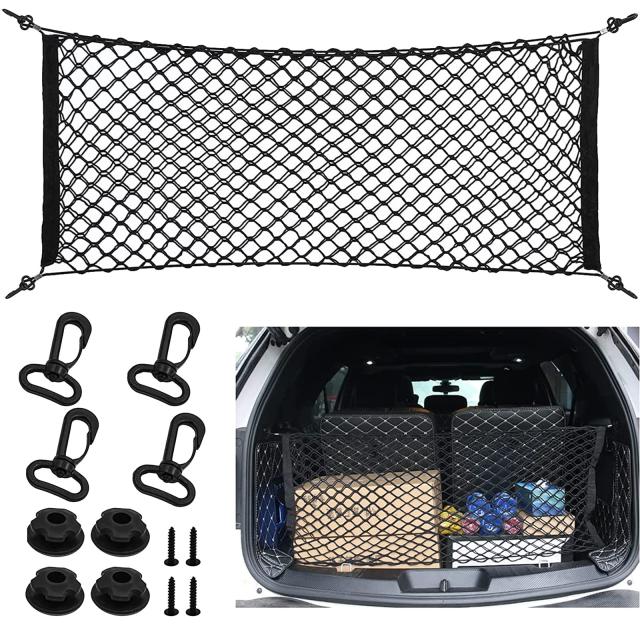 YFFSFDC カーゴネット トランクネット ラゲッジネット 90cm×40cm 2層 多機能 ネットポケット 収納ネット 伸縮性強い 荷物落下防止 取り