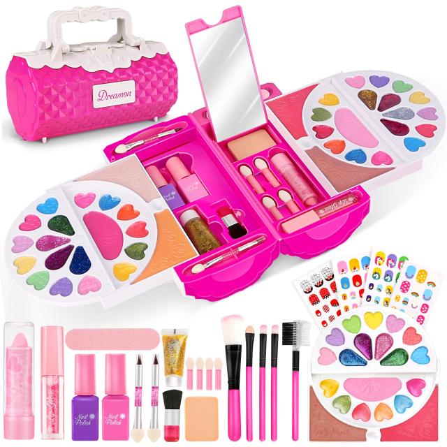 【安全な素材のメイクセット】このキッズ・メイクアップセットは高品質の材料で作られており、国際的な子供のおもちゃ基準の安全要件を満たしています。 メイクアップは石鹸と水で簡単に落とせ、肌にシミを残しません。 ご使用前に、お子様の皮膚テストを行うことをお勧めします。