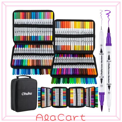 Ohuhu アートマーカーペン 筆先 水彩ペン 水性 ふでタイプ ふで・極細 ブラッシュ 鮮やか イラスト 手帳 絵手紙 色塗り 塗り絵 カード 収