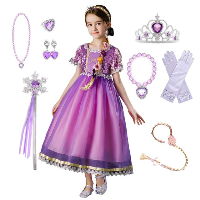 [KOCEKID] ラプンツェル風 ドレス 子供 ラプンツェル風 コスプレ ディズニー風 プリンセス ドレス 登場 ハロウイン コスプレ 仮装 変身
