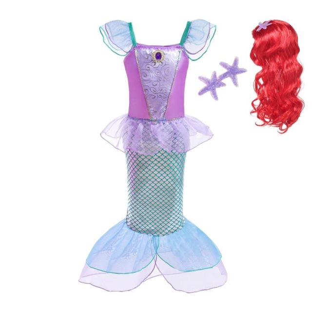 【豪華セット】柔らかく上品なドレスは、おんなのこを人魚のプリンセスのようにキラキラと輝かせてくれます! 外観を完成させるためのアクセサリーセットをバンドルしてください!(ウィッグ&ヘアクリップセット /クラウン、ネックレス、ワンド、イヤリング&手袋セット) *対応するスーツを選択するには、サイズ名を参照してください!