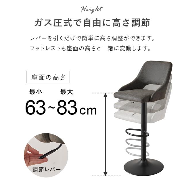 ヴィンテージ調 カウンターチェア 【送料無料】 背もたれ バーチェア おしゃれ ハイチェア 昇降 高さ調節 回転 北欧 アンティーク レザー調 80?p クッション クラシック ハイタイプ 椅子 回転式 ハイスツール 背もたれあり 高さ調整 店舗 ガス圧