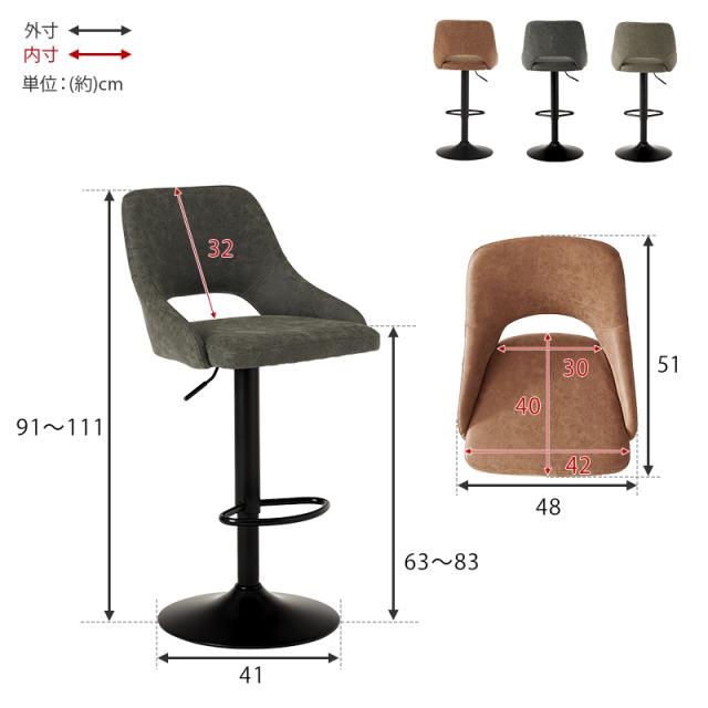 ■サイズ:(約)幅48×奥行51×高さ90〜111×座面高63〜83cm■素材:フレーム:スチール、張地:合成皮革