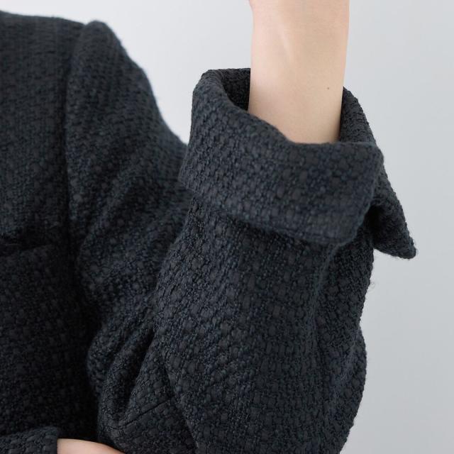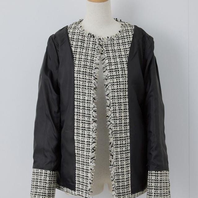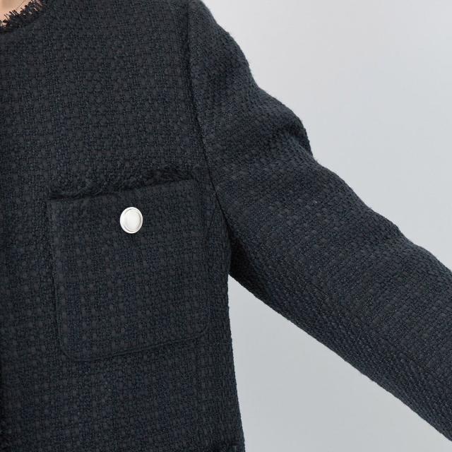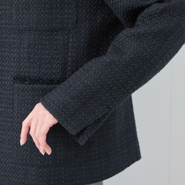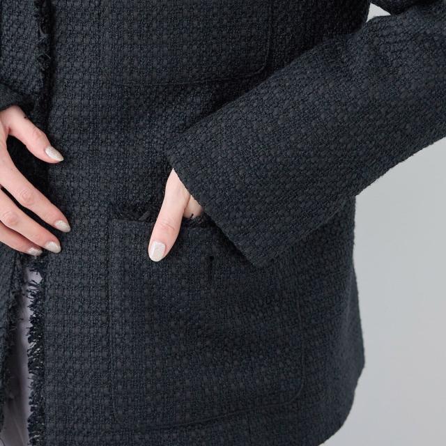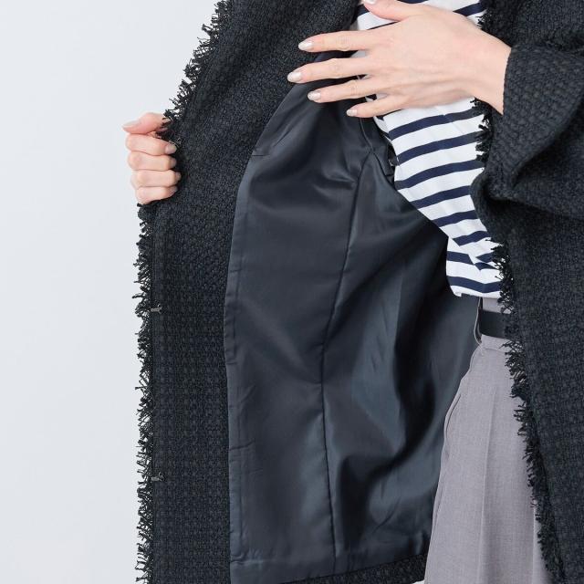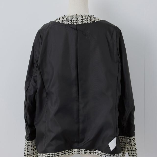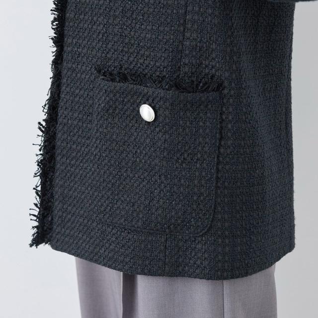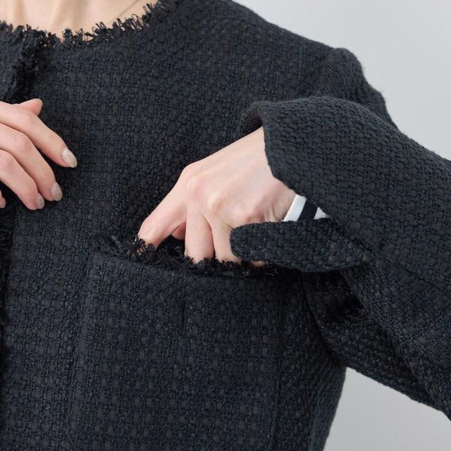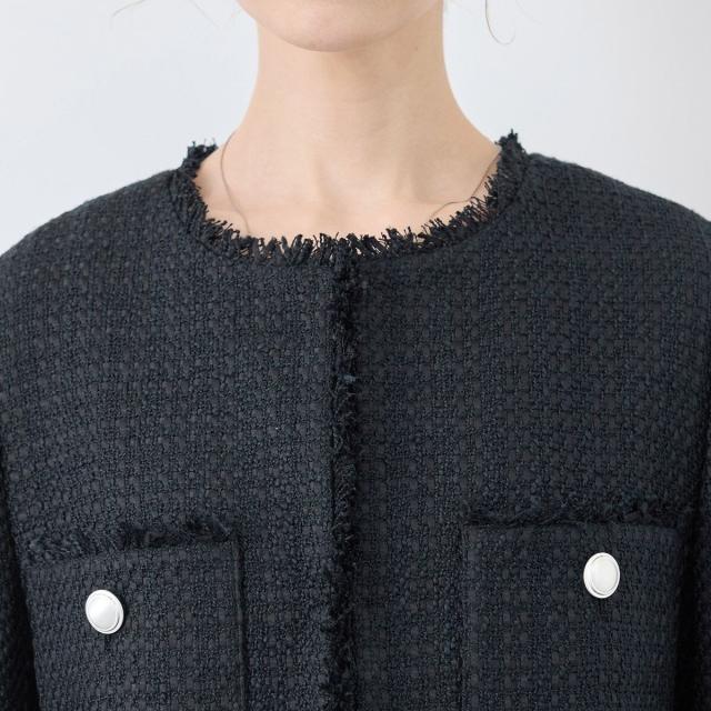 ・エターナルなノーカラーデザインが魅力のツイードジャケット。