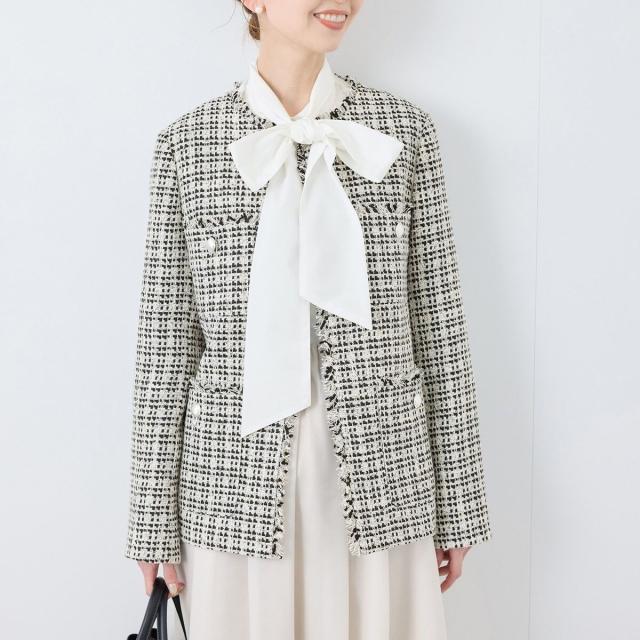 特別な日や日常使いのどちらにも対応できるツイードジャケットで、フォーマルからカジュアルまで多彩なスタイリングを楽しんで。